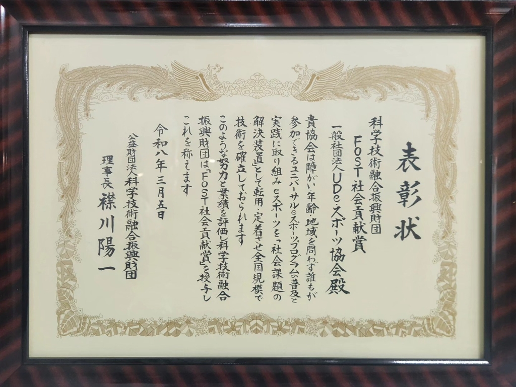UDe-スポーツ協会が FOST社会貢献賞 を受賞いたしました。